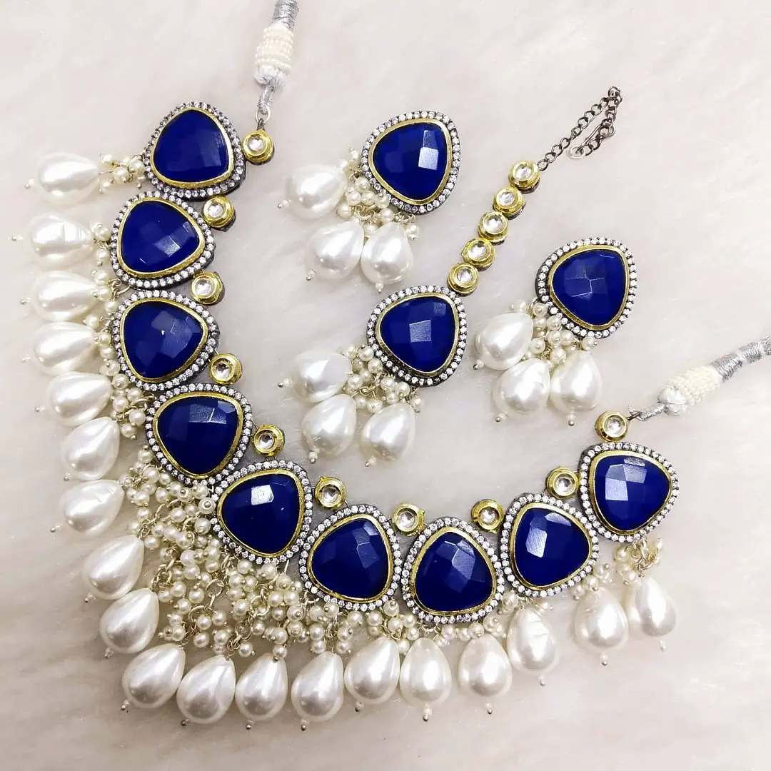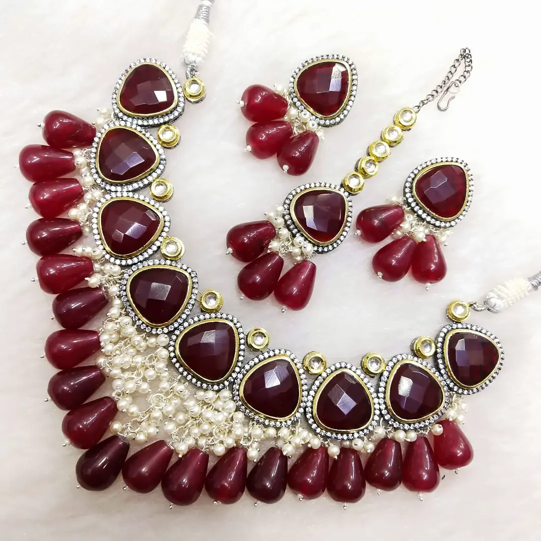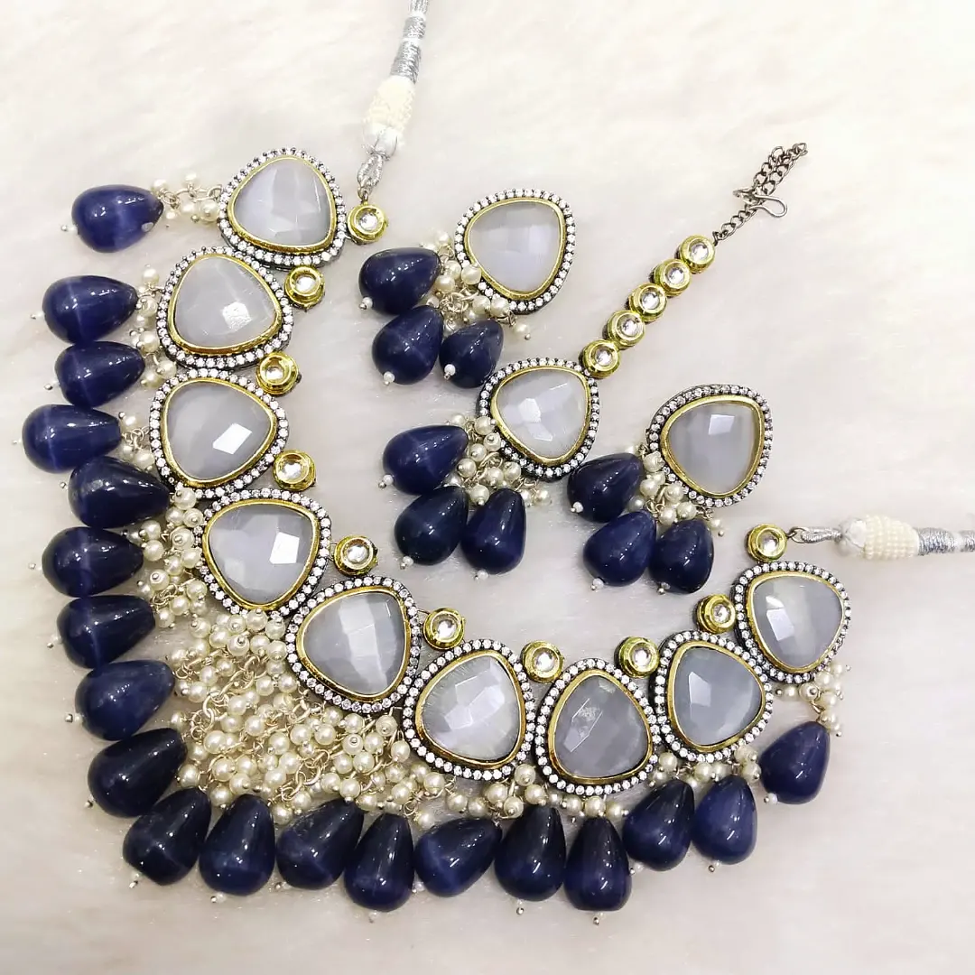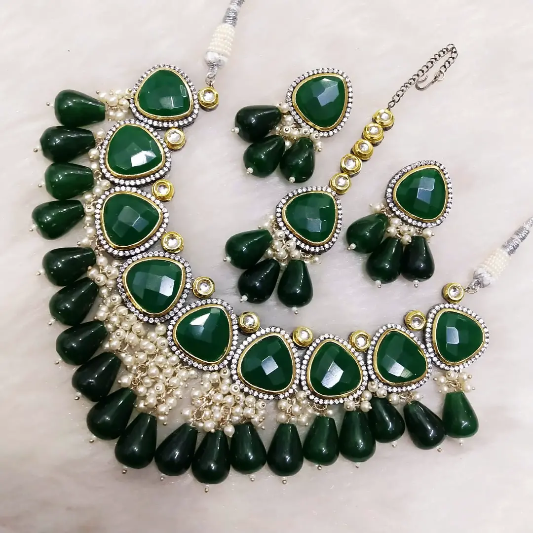 kundan and monalisa beads set with tikka